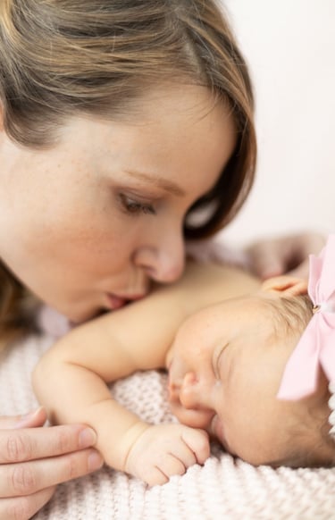 In everyday language, we combine newborn documentary, lifestyle, and classic portraits to tell your baby's story. Our secret weapon? The soft, natural light that paints our scenes, and when needed, we'll bring in artificial lights to brighten up darker spaces.